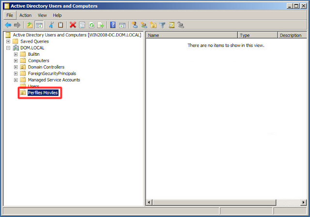 Creada la Organizational Unit, crearemos los grupos de Usuarios o Equipos que queremos incluir en nuestra nueva OUllamada perfiles móviles.