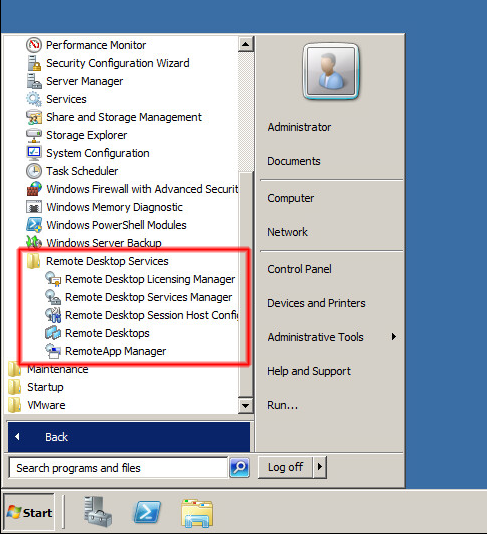 Finalizada la instalación, podremos comprobar que en el menú inicio habrá aparecido una subcarpeta llamada Remote Desktop Services, que contendrá, todas las herramientas necesarias para gestionar los servicios de escritorio remoto en nuestro .