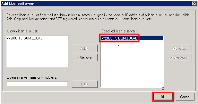 En la ventana Add Lcense Server, aparecerá el listado de los servidores de licencias de Terminal Services que tenemos configurados y activos en nuestra red, en nuestro ejemplo solo tenemos uno, seleccionaremos el servidor.