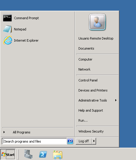 Comprobaremos que se ha creado un nuevo perfil para el usuario en nuestro servidor de escritorio remoto. El usuario final tendrá acceso a los servicios que le hayamos permitido utilizar en el servidor.