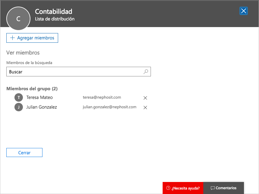 3. En la parte de Miembros hacemos click en Editar, nos va a mandar a la ventana con los miembros disponibles y en el botón Agregar Miembros hacemos click, se nos abre la lista con todos los correo disponibles y seleccionamos el que vamos a ingresar a nuestra lista como se muestra en las siguientes imagenes